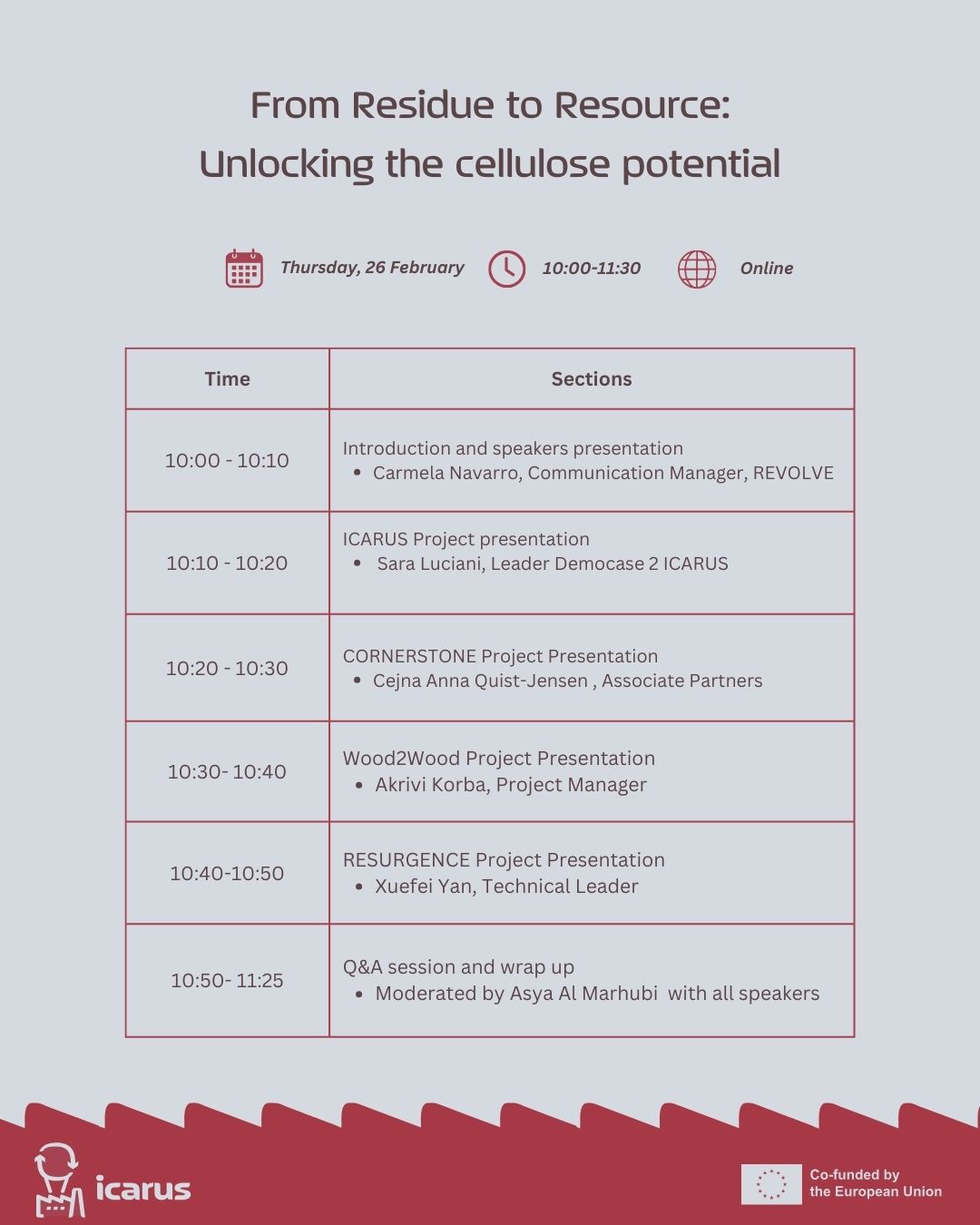 Join us for an interactive webinar where European projects present their latest work on the valorisation and upcycling of cellulose waste.